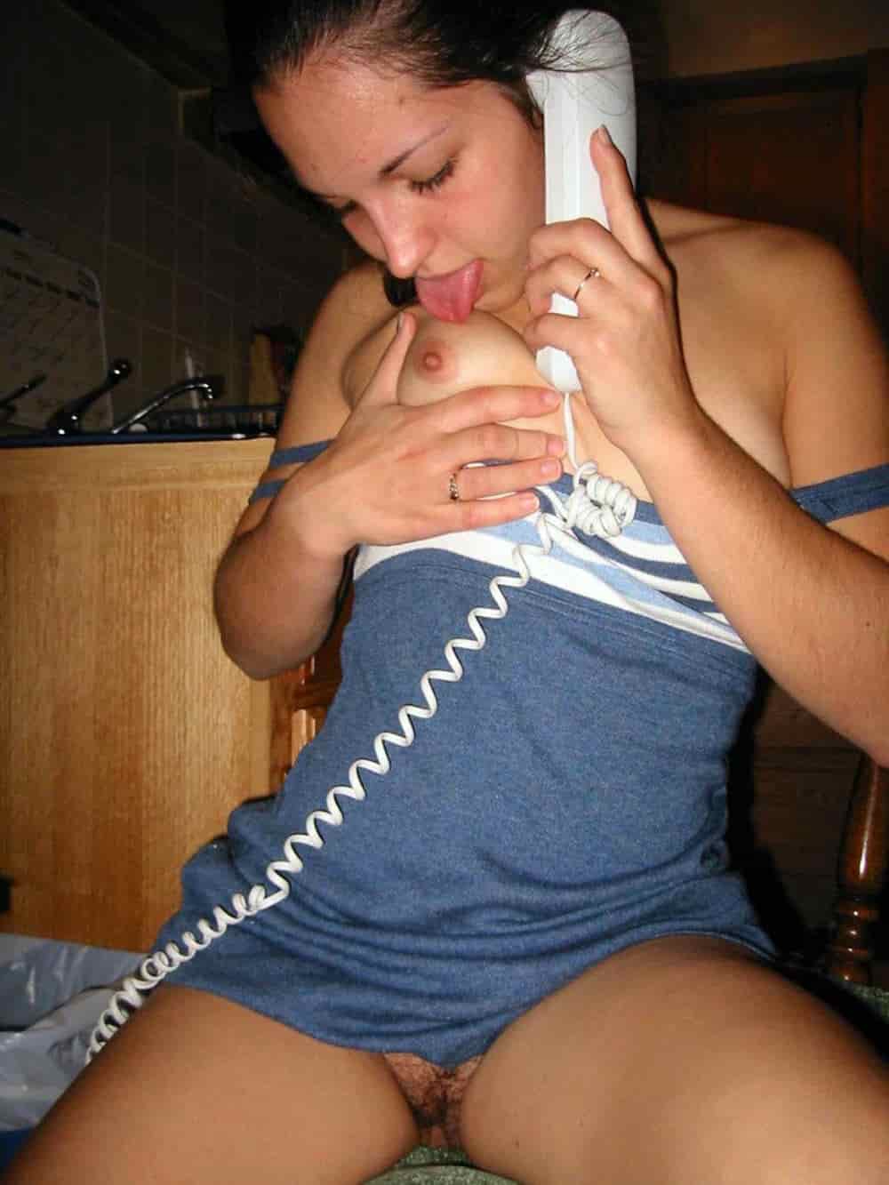 На видео брюнетка с распущенными волосами сидит на кровати в спальне. Она оживленно разговаривает по мобильному телефону, ее поза и мимика постепенно меняются от заинтересованной до возбужденной. Видно, как содержание беседы приводит ее в состояние сильного **сексуального возбуждения**. Не в силах сдержать порыв, девушка откладывает телефон в сторону, не прерывая разговора. Она расстегивает штаны и погружает руку внутрь. Ее движения сначала осторожные, поглаживающие, но быстро становятся более уверенными и настойчивыми. Камера крупным планом показывает, как ее пальцы скользят по небритой вульве, стимулируя клитор и половые губы. Девушка закидывает голову, ее дыхание учащается, речь в телефонную трубку прерывается стонами. Ракурс позволяет рассмотреть естественную форму ее груди, колебающейся в такт движениям тела. Сцена снята с близкого расстояния, что создает эффект присутствия. Акцент сделан на контрасте между обыденной обстановкой комнаты и откровенным действием. Финал видео остается за кадром, оставляя пространство для воображения. Основной фокус сделан на процессе самоудовлетворения, вызванного исключительно голосом собеседника и силой воображения.